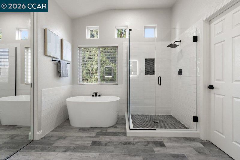 Shower Over Tub, Stall Shower, Tile, Updated Baths, Double Vanity, Stone