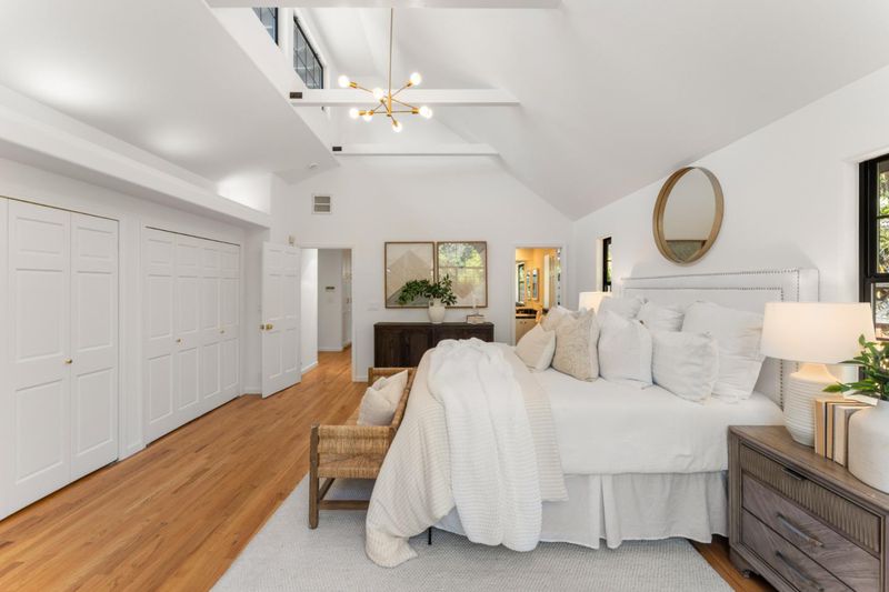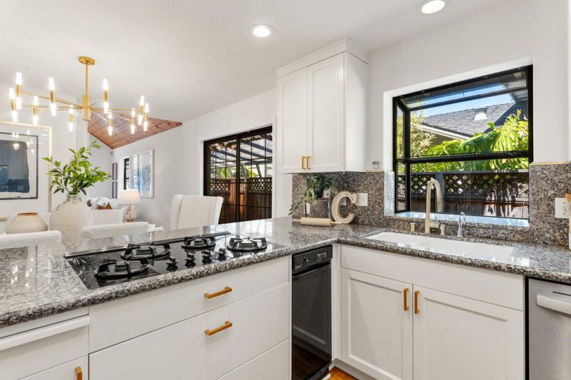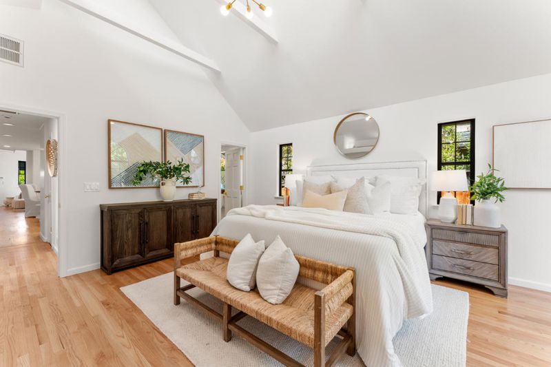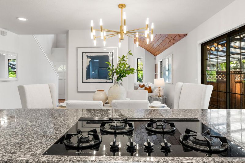 Located in Mountain View, close to Castro St and transportation, this 2,513 sq. ft. home offers four bedrooms and three full bathrooms, with the primary bedroom and 2 other bedrooms on the ground floor. The kitchen is equipped with a gas cooktop, double oven, microwave, dishwasher, refrigerator, freezer, trash compactor, and a skylight that adds natural light. An inviting dining area is open to the kitchen. The living area features gas log fireplace and high, vaulted ceilings. The home includes a separate upstairs loft/family room and a fourth bedroom and 3rd bath. The laundry room is conveniently located near the downstairs bedrooms with washer and dryer included. Additional features include central AC, forced air heating, two car garage and a bonus living area behind the garage with kitchen, 1 bath and upstairs sleeping area. The property sits on a 7,500 sq. ft. lot within the Mountain View Whisman elementary school district.