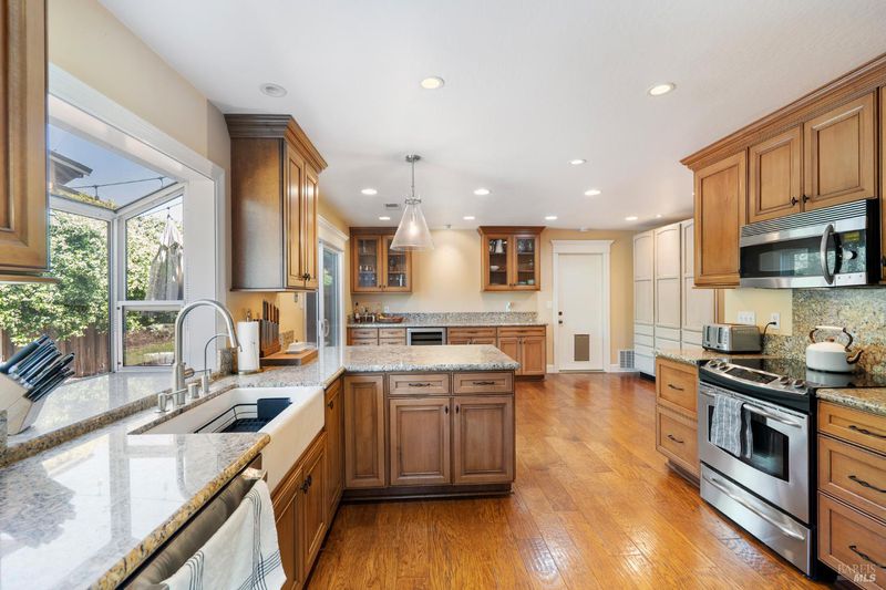Welcome to 316 Durham Court in the charming city of Benicia! This beautifully maintained single-story home offers 4 spacious bedrooms and 2 full bathrooms, perfectly blending comfort and functionality. Situated at the end of a quiet, flat court, the property sits on an expansive 12,000+ square foot lot, providing privacy and plenty of room to enjoy. Inside, you'll find dual pane windows throughout, filling the home with natural light while enhancing energy efficiency. The inviting living room is equipped with built-in ceiling speakers, creating the perfect setting for entertaining or relaxing. The tastefully remodeled kitchen features abundant cabinet storage and a convenient sliding door that opens directly to the side patio ideal for seamless indoor-outdoor dining and hosting gatherings. Step outside to discover multiple outdoor living spaces, including two backyard patios and a charming front courtyard patio, offering versatility for entertaining or quiet retreat. The side yard is truly a gardener's dream, complete with multiple raised planter beds and a variety of fruit trees, ready for your personal touch. This exceptional property combines a prime location, generous lot size, and thoughtful upgrades an opportunity you won't want to miss!