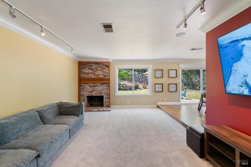 Brick, Family Room, Gas Piped, Raised Hearth