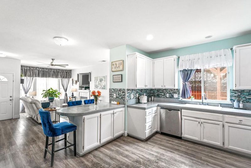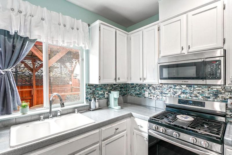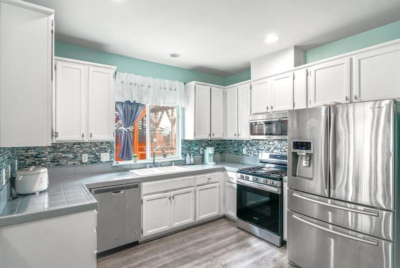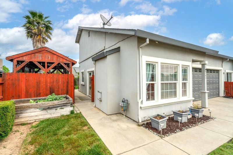 Cute and clean, this move in ready 3‑bed, 2‑bath home offers a bright, functional floor plan and great curb appeal on a corner lot. The main level features laminate flooring, high ceilings, an open family room with fireplace, a kitchen with tile countertops, built in microwave, dishwasher, and plenty of cabinet space. Indoor laundry completes the downstairs layout. Upstairs you'll find a private primary suite with dual vanities and a spacious bath. Enjoy the large backyard with covered patio perfect for outdoor living. The property also includes a roomy two car attached garage, newer water heater, and fresh interior and exterior paint. Ideally located just minutes from I 80, and a short drive to downtown Sacramento, parks and schools.
