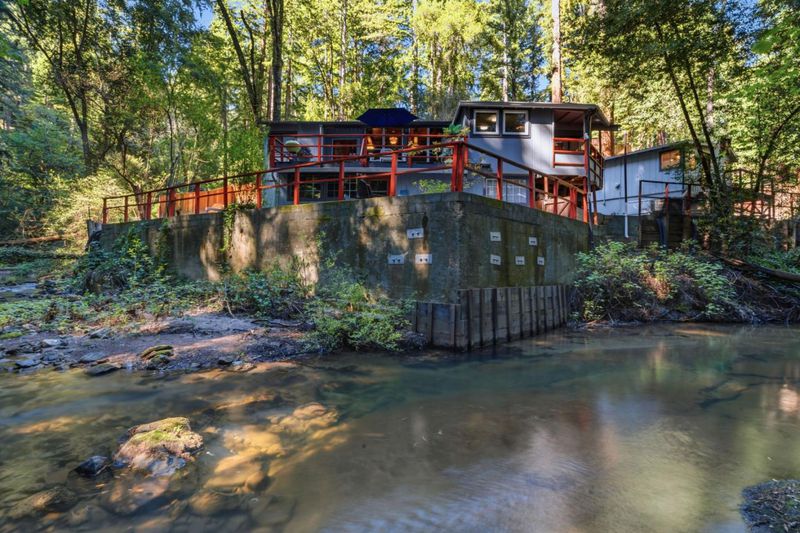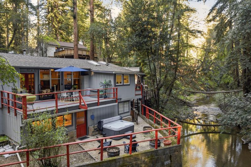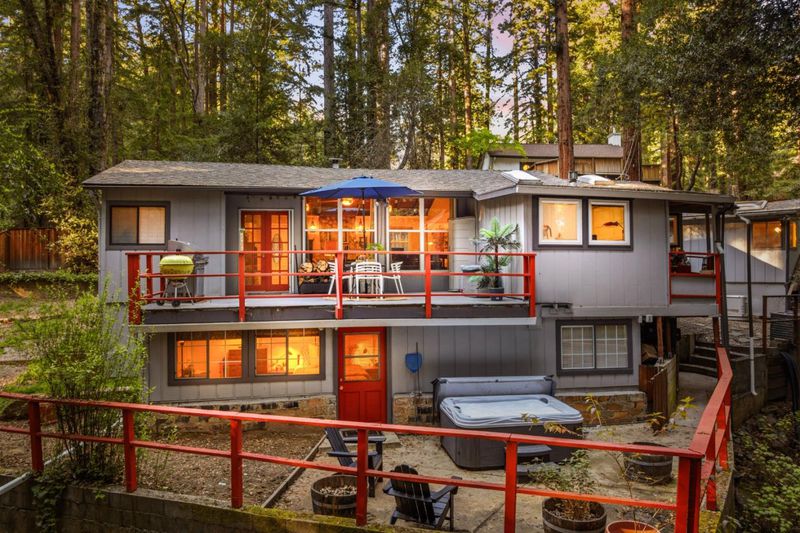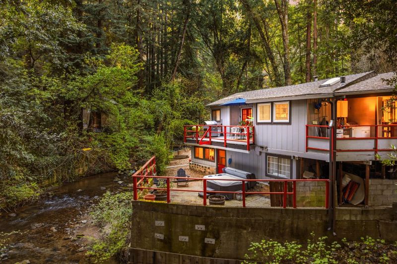 New Price! Fully inspected with reports available including passing the point of sale septic inspection. This affordable 4-bedroom, 1-bath single family home with separate studio ADU in the redwoods is in a peaceful and quiet neighborhood. Think mountain chalet cool meets everyday comfort. Amenities include stainless steel appliances, new carpets, sleek kitchen tile, new windows, and a whole-house generator. Redwood vaulted ceilings and tons of natural light make it feel like the outdoors are right there with you. Outside, it's a sunsoaked, waterfront paradise with 2 decks and a patio along the river offering a beautiful view, perfect for summer BBQs, entertaining or relaxing after a busy day. A fenced in yard has a garden and a play space for dogs. The hot tub is your front-row seat to the kind of stargazing you only get with zero light pollution. A detached ADU is ready and waiting for multigenerational living, working from home, or renting. In the winter the fireplace/wood stove keeps the whole house nice and snug. This home is midway between surf and Silicon Valley and just a block off highway 9 makes it easy to get you to work, school or entertainment as well as offering a scenic drive. 495 Primavera Rd isn't just a house, it's a lifestyle. Ready to make it yours?