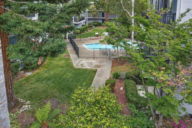 This 2-bedroom, 1-bath home offers 936 square feet of living space on a 781-square-foot lot. Short walk to CalTrain. The kitchen features granite countertops, an electric cooktop and oven, microwave, dishwasher, garbage disposal, refrigerator, and a wine refrigerator, providing a well-equipped area for meal preparation. Flooring throughout includes a combination of tile in kitchen and carpet through out. Laundry facilities are available within the community. The home has central forced air gas heating and does not include cooling. There is a dining area but no separate family room. The has a carport covered parking space with a doble cabinet door for storage. It also benefits from community amenities including a pool. It is located within the Mountain View Whisman Elementary School District. Furnished photos are virtual staged.