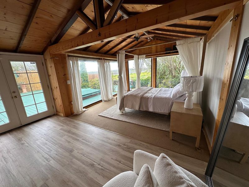 This beach home offers peaceful views of the historic Salinas River open space and is just a 7-minute walk to the beach. It features 3 bedrooms and 2 bathrooms. The large deck includes a hot tub, and the family room has French doors with floor-to-ceiling windows, providing ample space for family gatherings. There's a spacious dining room with a fireplace and a cozy kitchen with an eat-in nook. Perimeter fencing ensures privacy, creating a private oasis.
