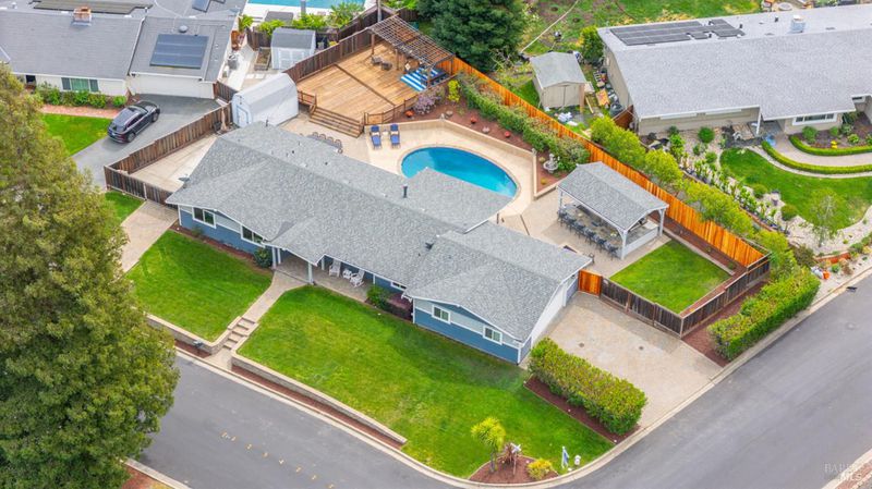 THIS IS THE ONE! Nestled in one of Westside Danville's most sought-after neighborhoods, this stunning single-story ranch home sits on a corner lot in a quiet court. Beautifully updated 3 bedroom, 2 bath home shines with newly resurfaced hardwood floors and fresh interior paint throughout. The chef's kitchen is a showstopper, featuring a premium Wolf gas range with electric ovens, a sleek range hood, built-in Miele coffee system, and gorgeous granite countertops. Both bathrooms exude timeless charm with marble flooring and original stained-glass windows, while the primary suite boasts heated bathroom floors. Step outside to an entertainer's dream: Sparkling in-ground pool, charming gazebo, and a fully equipped outdoor kitchen complete with gas and electricity, including a grill, refrigerator, pizza oven, kegerator and sink. Additional highlights include a permanent shed, RV parking, tankless water heater, central vacuum system, and beautifully landscaped grounds. Ideally located near the Danville Livery, top-rated schools, the Iron Horse Trail, shopping, dining and easy freeway access. Move-in ready and absolutely sparkling- this is a home you won't want to miss!