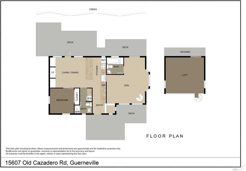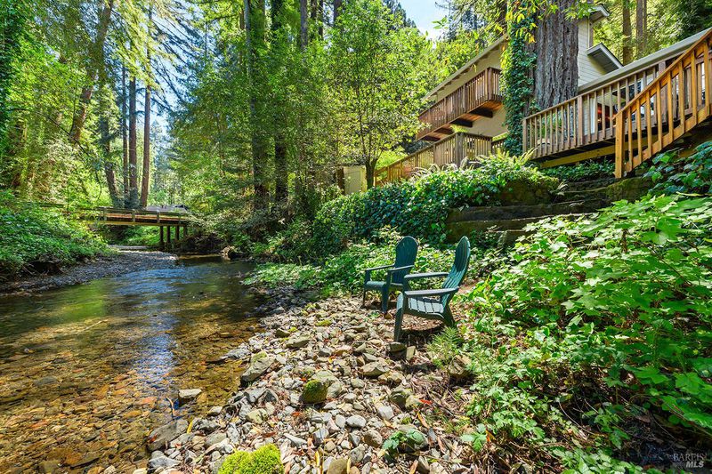 Completely unwind to the soothing sounds of nature -- creek flowing, birds chirping, rustling leaves. Hidden behind the fence is your private sanctuary. Home combines the old and the new. 2004 addition adds a den and sleeping loft to the cozy knotty pine original cottage. Stone fireplace, remodeled baths and abundant natural lighting make this house a home. Pride of ownership exudes from every corner. Beautiful refurbished materials have been use to create unique gates, bar, greenhouse. Extensive decking overlooks the creek and is perfect for al fresco dining. When you wander the grounds you'll find a carport with storage, a greenhouse, outdoor dining area w/bar and fire pit, chicken coop, RV parking and low maintenance plantings. Upgrades inld/generator, electric. This property can make your dreams come true!