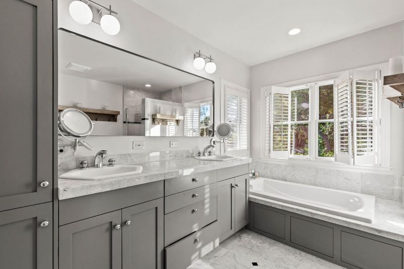 Nestled in the heart of Menlo Parks coveted Las Lomitas School District, this beautifully appointed 2,630 sq ft home blends timeless elegance with modern sophistication. A welcoming formal entry opens to an inviting living room with classic fireplace and a gracious formal dining room, ideal for both intimate dinners and festive gatherings. The open and spacious kitchen, thoughtfully designed with a center island and prep sink, flows seamlessly into the family room with its own fireplace framed by built-in bookshelves, both overlooking the park like, freshly landscaped backyard, firepit area serene retreat for entertaining, al fresco dining, or relaxed everyday living. The main level en suite with full bath provides flexibility for guests, multi-generational living, or a private home office. Upstairs, find three bedrooms, including a luxurious primary suite retreat with a walk-in closet and a spa inspired bath featuring an oversized soaking tub, dual vanities, and a glass enclosed shower, plus a convenient upstairs laundry room. With its elegant interiors, harmonious indoor-outdoor flow, premier location, walking distance to award-winning schools, vibrant downtown amenities, and nearby parks, this home captures the best of Menlo Park living!