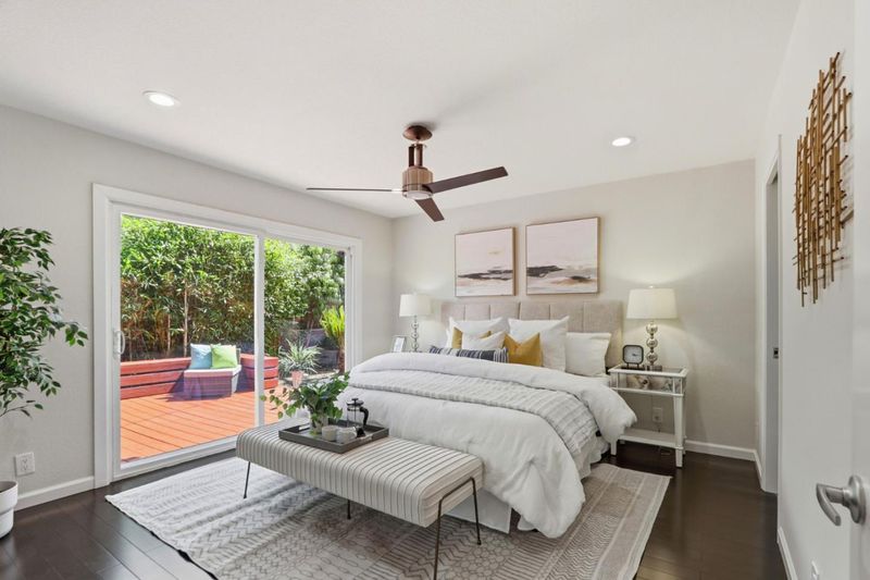 This beautifully updated single-story home offers comfort, style, and exceptional curb appeal with picturesque hill views. Inviting open floor plan showcases rich hardwood floors, recessed lighting, and a light-filled LR with French doors that frame the scenic surroundings, while the cozy family room is anchored by fireplace with a stacked-stone surround. The chefs kitchen featuring quartz countertops, maple cabinetry, a mosaic backsplash, and premium stainless steel appliances including LG, Whirlpool, and an EdgeStar beverage fridge. The serene primary suite offers private backyard access, walk-in closet, and a spa-inspired ensuite complete with a deep soaking tub and separate body-spray shower, Step outside to a true backyard oasis, where a painted wood deck, tranquil water feature, and covered pergola are surrounded by lush palms, bamboo, and Italian cypress, creating a private retreat perfect for relaxing or entertaining. Additional highlights include versatile side yards with tropical accents and a 16kw Generac generator, a two-car garage with epoxy floors and laundry area, Ecobee thermostat. Ideally located in Almaden Valley near Quicksilver County Park, Boulder Ridge Golf Club, and local shopping, and highly regarded schools including Simonds,Bret Harte & Leland.