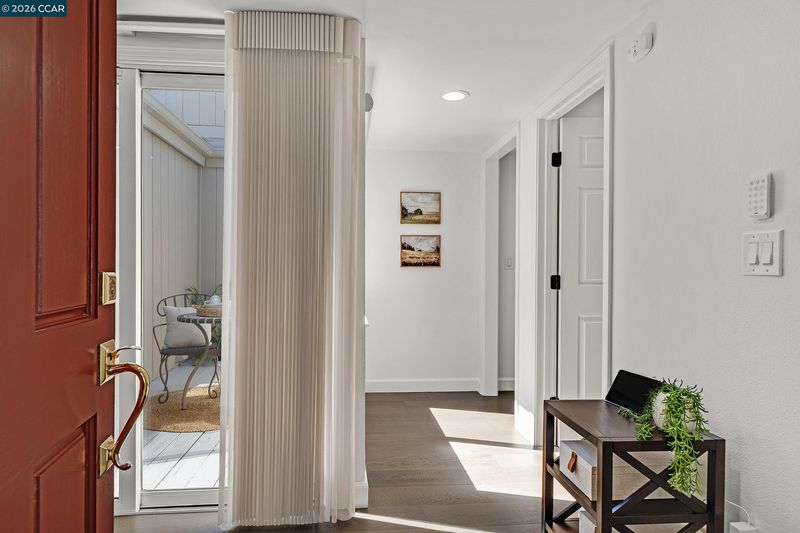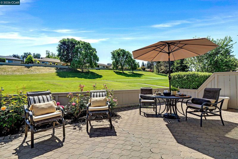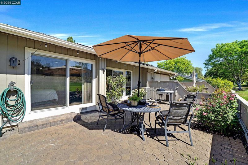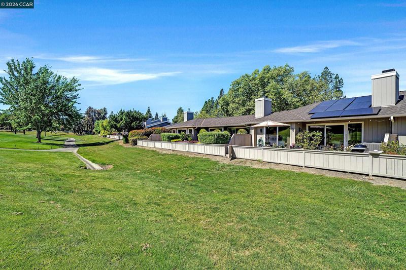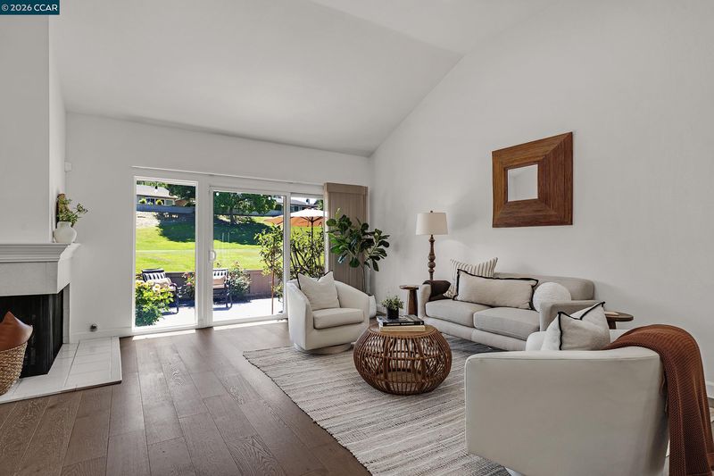 Welcome to 692 Silver Lake Dr., Danville, a beautifully updated 3 bedroom, 2 bath single story townhouse offering 1,630 square feet of thoughtfully designed living space on a 3,600 square foot lot, featuring fresh paint, landscaping, engineered hardwood floors, and new tile throughout. Inside, the open concept kitchen showcases stainless steel Thermador appliances including a gas cooktop and combination microwave, high end sink, faucet and pot filler, hot water dispenser, wine refrigerator, new cabinetry with pull out shelving, tile backsplash, quartz counters, and a skylight. Mostly all Hunter Douglas shades are remote controlled. The space flows into a light filled living area with vaulted ceilings, recessed lighting, and abundant natural light. Oversized bedrooms, office space, mirrored closets, a Lennox two stage AC with UV system, and a separate laundry room add comfort. Bathrooms feature double vanities and a luxurious primary shower. A two car garage is complemented by 16 REC solar panels, Tesla battery, Span panel, and EV charger. Tucked inside a gated community with 5th hole golf course views near the country club, this home offers serene living with a charming courtyard entrance, private terrace, complimented by a pavered back patio perfect for relaxing or entertaining.