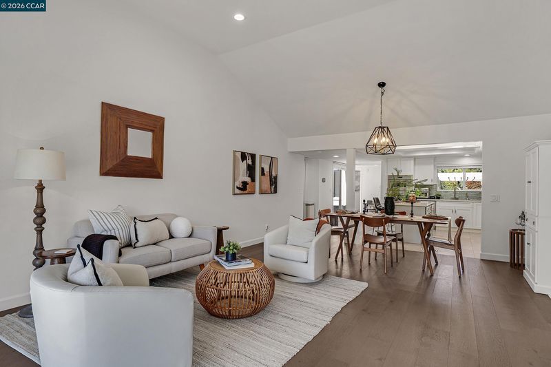 Welcome to 692 Silver Lake Dr., Danville, a beautifully updated 3 bedroom, 2 bath single story townhouse offering 1,630 square feet of thoughtfully designed living space on a 3,600 square foot lot, featuring fresh paint, landscaping, engineered hardwood floors, and new tile throughout. Inside, the open concept kitchen showcases stainless steel Thermador appliances including a gas cooktop and combination microwave, high end sink, faucet and pot filler, hot water dispenser, wine refrigerator, new cabinetry with pull out shelving, tile backsplash, quartz counters, and a skylight. Mostly all Hunter Douglas shades are remote controlled. The space flows into a light filled living area with vaulted ceilings, recessed lighting, and abundant natural light. Oversized bedrooms, office space, mirrored closets, a Lennox two stage AC with UV system, and a separate laundry room add comfort. Bathrooms feature double vanities and a luxurious primary shower.