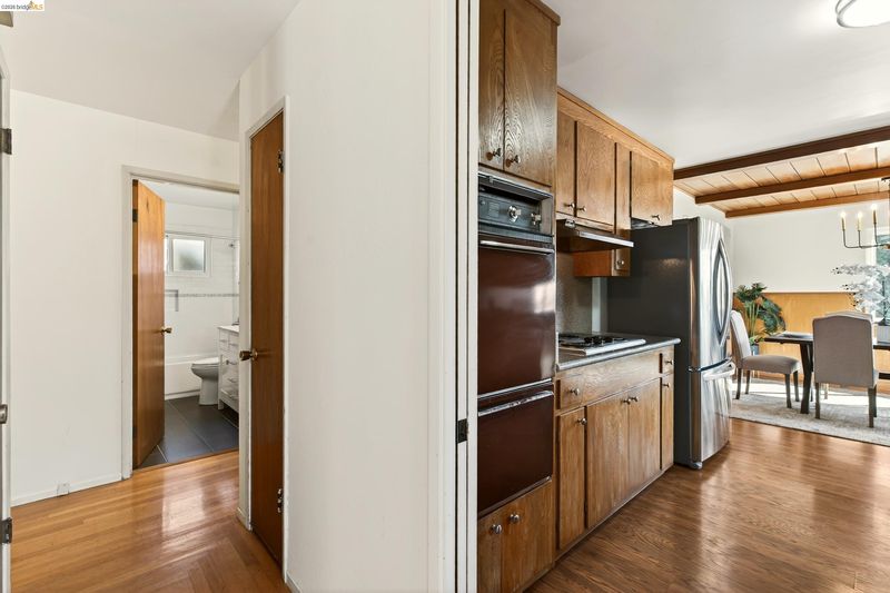 Built in 1959, this classic mid-century home offers timeless design and comfortable living in a desirable East Richmond Heights neighborhood. The home features almost 1,400 sq ft of living space, 3 Bedrooms, 2 beautifully updated bathrooms, and over 500 sq ft of 2-car garage space. The bathrooms have been thoughtfully renovated with stylish Pottery Barn-inspired finishes, creating a fresh and inviting feel while maintaining the home's character. Large picture windows bring in natural light and allow for enjoying the views of Mount Tamalpais, the San Pablo Reservoir, and the Bay. The kitchen offers a great footprint and presents an excellent opportunity for a new owner to add their own design touches and create a kitchen of their dreams. Conveniently located near parks, schools, shopping, and commuter routes. This home blends classic architecture, modern updates, and future potential—serene backyard with mature landscape.