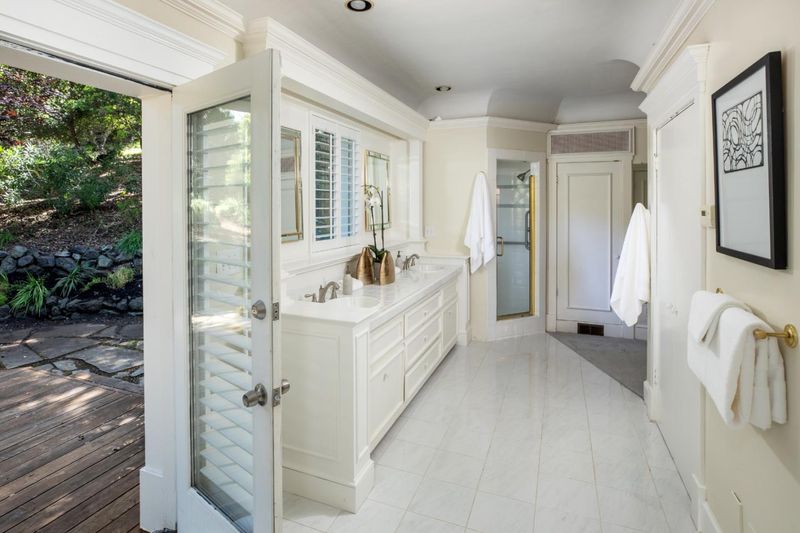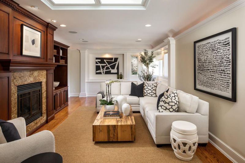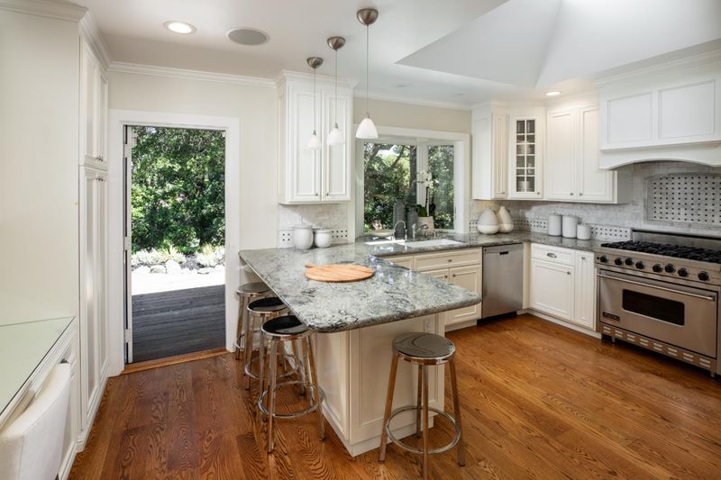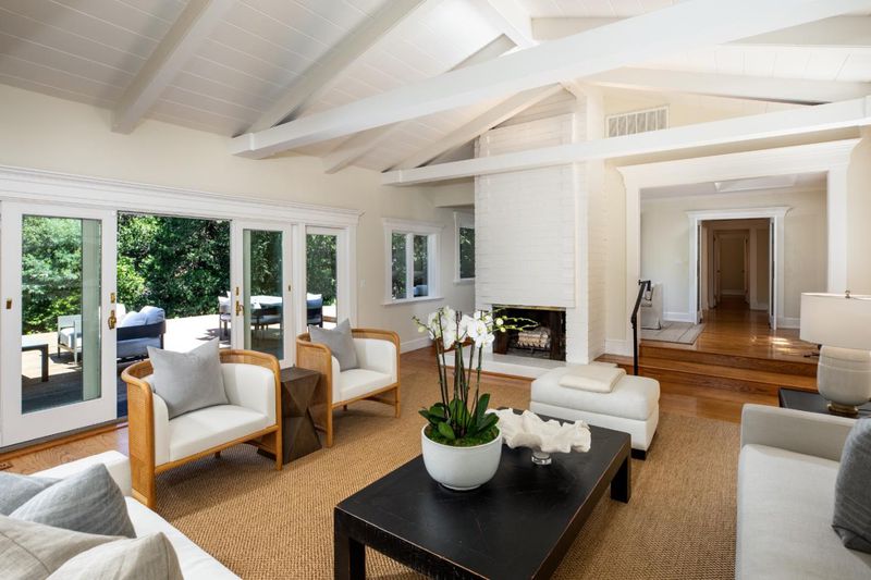 Generous scale and a one-level floor plan with subtle elevations define this home with 4 bedrooms, and 4 full baths. Offered for the first time in more than 45 years, the property spans just over one acre of mostly level land set back from the street amid mature foliage and open spaces. Interiors are defined by elaborate millwork, hardwood and carpeted floors, and numerous skylights. The updated kitchen and adjacent family room serve as the central gathering space, while the formal living and dining rooms are well suited for entertaining. A separate bedroom wing includes a spacious primary suite with fireplace, multiple closets, and a marble-appointed bath. Spacious bedroom with Murphy bed and desk center, plus adjacent bath, privately located off the living room. Expansive grounds with a large deck, walking paths, and mature trees complete the setting, just minutes from Highway 280 and top-rated Los Altos schools.