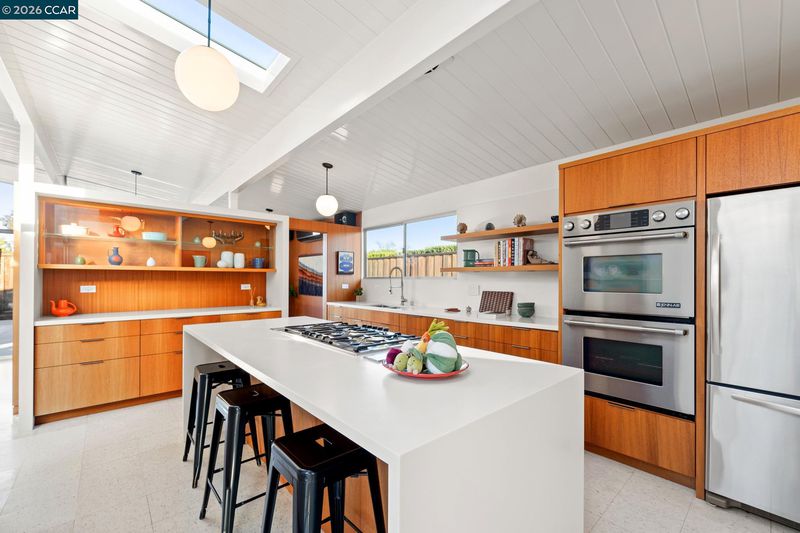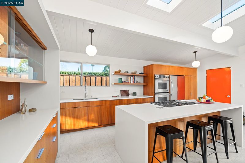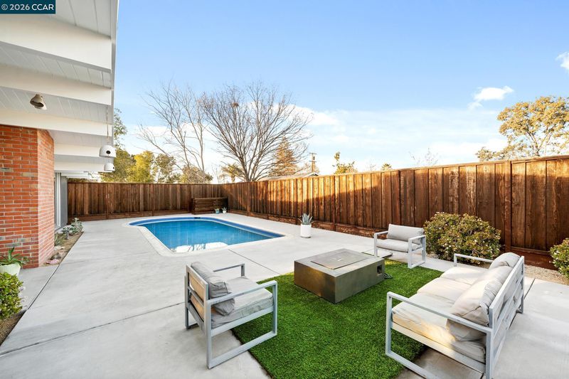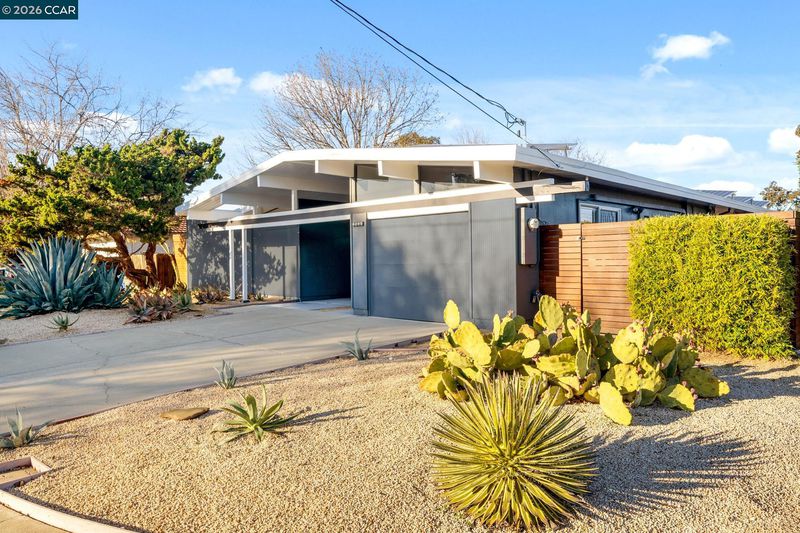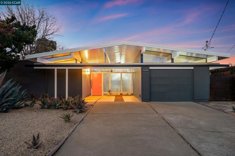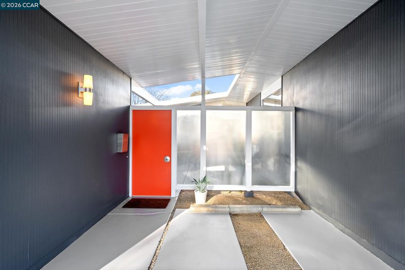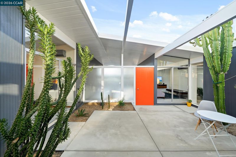 The epitome of California cool, this exceptional home offers iconic mid-century modern living for the most discerning tastemakers. Built by renowned developer Joseph Eichler and designed by architect A. Quincy Jones, this coveted pitched-roof atrium model is an architectural gem. As featured in Atomic Ranch and SF Chronicle, the home showcases thoughtful, period-correct renovations, including rich mahogany cabinetry by Berkeley Mills, elegant wood paneling and classic VCT tile flooring throughout. Walls of glass and soaring ceilings flood the interiors with natural light, creating a seamless connection between indoor and outdoor living. Designed for both everyday comfort and effortless entertaining, the home features a chef’s kitchen, resurfaced pool, home sound system and finished garage. Sustainability meets style with owned solar panels, allowing you to enjoy modern luxury while reducing your carbon footprint. Located in Rancho Del Diablo, this Eichler is surrounded by picturesque views of Mount Diablo with convenient access to BART and major freeways. Welcome to timeless design, elevated living and unmistakable mid-century style.