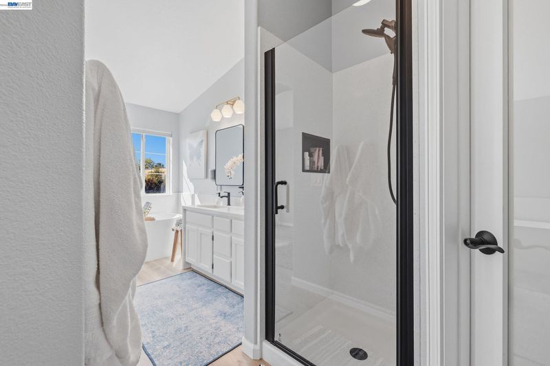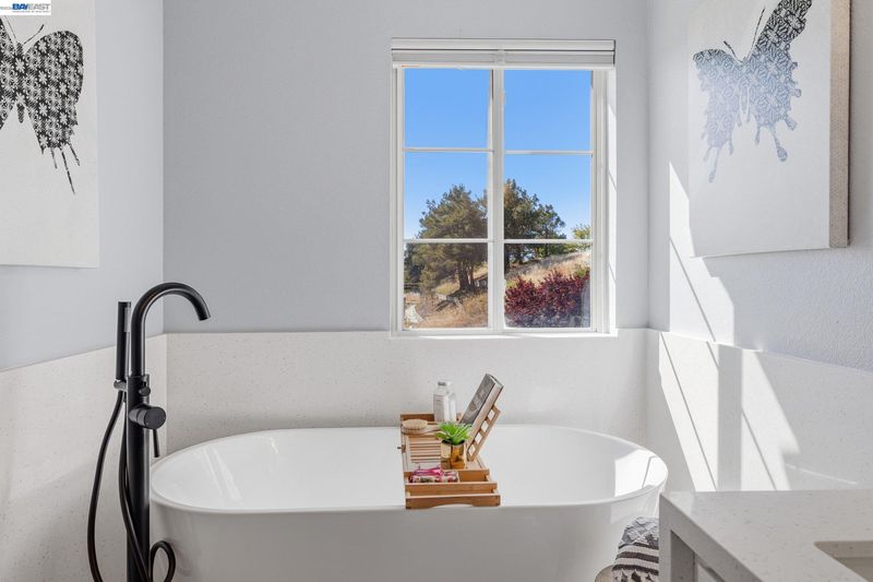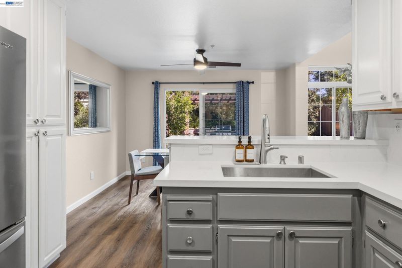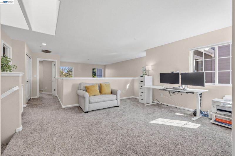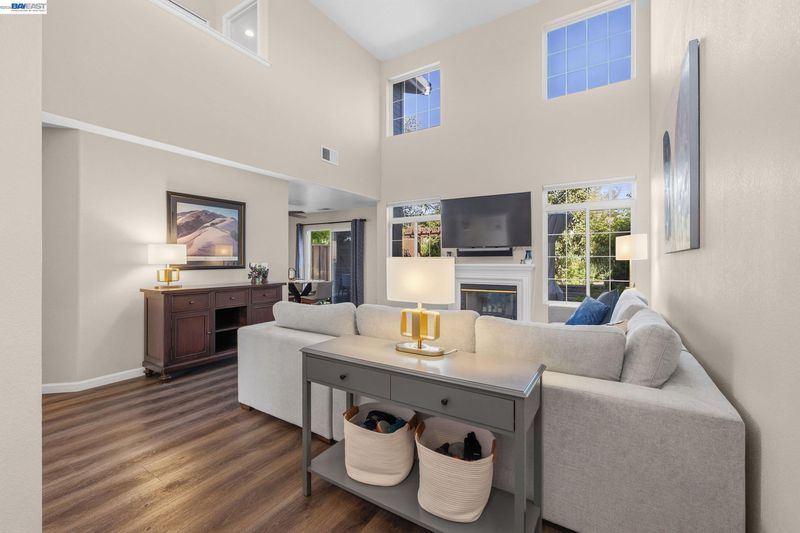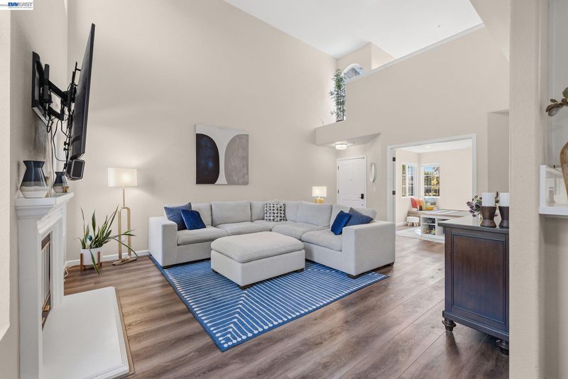 COMING SOON! This reimagined Portola Meadows townhome is move-in ready perfection with approx. 1,752 sq ft of modern luxury over two levels and fresh exterior paint. The stunning gourmet kitchen showcases sleek contemporary cabinetry, quartz countertops, and premium stainless appliances (KitchenAid and Whirlpool) flowing seamlessly to the dining area and family room with cozy fireplace – perfect for entertaining. Smart, flexible floor plan features a main-level bedroom and full bathroom, ideal for guests, home office, or multigenerational living. Upstairs, your spacious primary suite awaits with luxurious soaking tub, sleek stall shower, double vanity, and generous walk-in closet. The versatile loft offers endless possibilities for home office, media room, or creative studio, plus a second bedroom, bathroom, and convenient laundry. All three bathrooms feature chic, contemporary updates. Comfort and efficiency throughout with newer HVAC, central AC, double-pane windows, natural skylights, and beautiful newer vinyl plank flooring. Enjoy your private fenced backyard with patio for outdoor living. Attached 2-car garage provides secure parking. Resort-style community pool and spa! HOA covers exterior maintenance, hazard insurance, and reserves. Prime location near parks, I-580