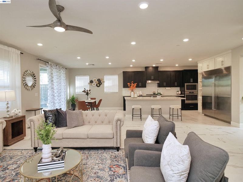 Welcome to this beautifully appointed SMART home, ideally situated on a premium corner lot in one of Tracy’s most desirable neighborhoods. Showcasing a light-filled, open-concept design, the home features a stunning full-height foyer that flows seamlessly into the expansive kitchen and great room perfect for both everyday living and entertaining. Thoughtfully upgraded with luxury built-in Sub-Zero refrigeration, custom cabinetry, wine-rack, EV charger, and a professionally designed front and backyard with private gated access and a upgraded California room with the misting system, this home offers a refined blend of comfort and style. The versatile floor plan includes a highly desirable downstairs guest suite with full bath, while upstairs features a spacious primary retreat, loft, and generously sized secondary bedrooms with walk-in closets. An attached secondary living area, currently integrated with the main home, provides excellent flexibility for ADU conversion(buyer to verify). Impeccably maintained and move-in ready, this home offers exceptional value with a competitive price point. Conveniently located near parks, schools, shopping, & major commuter routes. A rare opportunity to own a turnkey home with space, style, & flexibility. No HOA, No Mello-Ross.