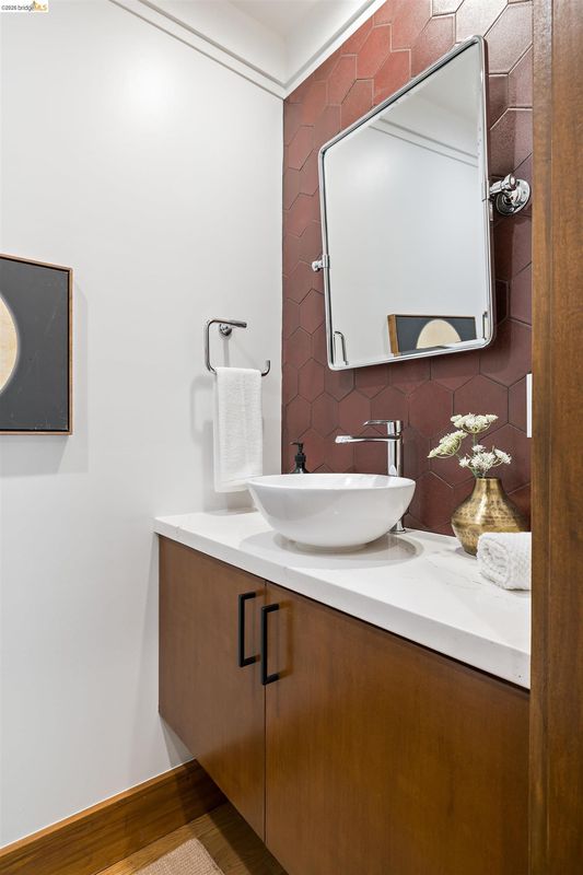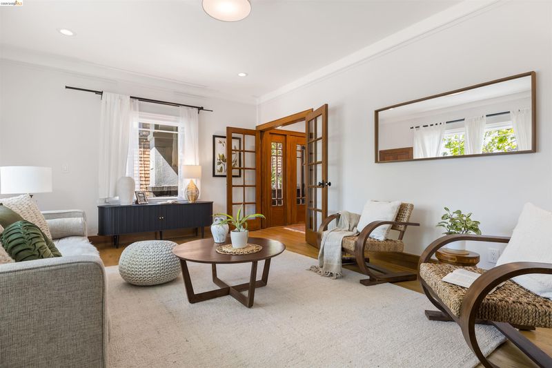 Rare and stunning Timbre Architects–designed remodel of a classic Elmwood Craftsman, ideally located for an easy, walkable lifestyle near the shops, cafés, dining, and everyday conveniences of College and Claremont. With ample off-street parking, you may hardly need your car once you’re home.?This gracious 3BD/2.5BA residence also includes a bonus office and detached garage ideal for storage, studio, or flexible use. Thoughtful modern updates beautifully complement the home’s original character. Delicate picture-rail soffits and custom wood trim echo the original entry doors and staircase, creating a seamless dialogue between old and new. Heath tile accents elevate the kitchen bar, powder room, and living room fireplace, while the chef’s kitchen features custom cabinetry, a Bluestar range, and drawer microwave.?Designed for easy indoor-outdoor living, the home opens to a landscaped, café-lit yard ready for summer entertaining.