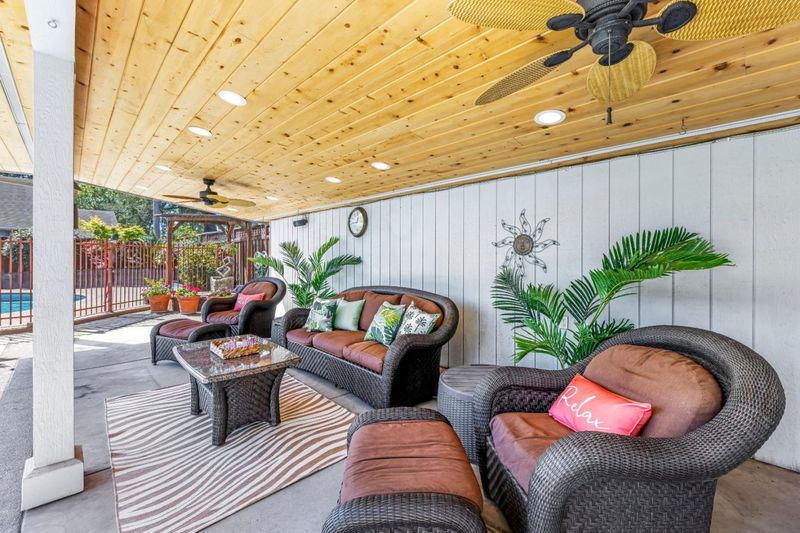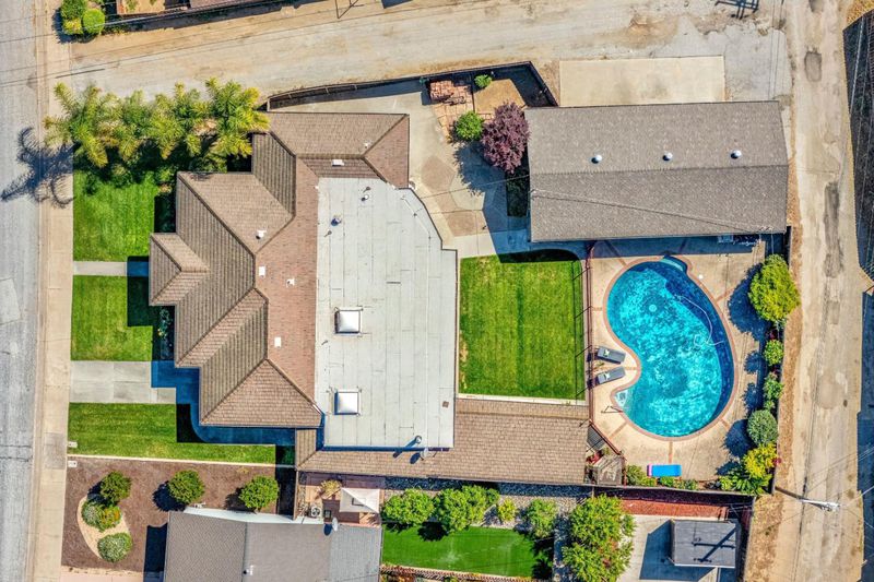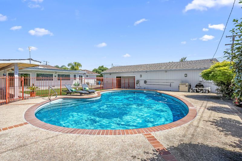 Single story 3 bedroom, 3 bath home. Alley access, detached 3 car garage, could easily be converted to ADU with private access, 11,200 sq ft lot, pool, lawn & relaxing cabana. Huge great room w/ wet bar, refrig & gas stove. Separate formal living rm
