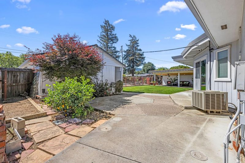 This spacious single level 3-bedroom, 3-bath home offers 2,458 sq ft of comfortable living space. Kitchen features tile countertops, large center island, builtin double electric ovens, JennAir cook top w/ grill, microwave, dishwasher, garbage disposal, trash compactor. Ideal kit for meal preparation and entertaining. Pass thru open to great rm from kit plus a breakfast bar Flooring throughout the home includes hardwood, tile, carpet, and vinyl/linoleum. Huge great room w/vaulted ceiling is equipped with a gas-burning freestanding stove, 2 skylites, builtin wet bar equipped with ice maker & bar fridge. This room is large enough to be divided to create even more usable space! Separate formal dining room offers full wall builtin buffet w/ upper glass door cabinets to show off the pretties! Detached three-car garage is perfect for ADU conversion w/ private alley access-you'll never know their is someone living there & still have a garage! Heated gunite pool offers ample sunning areas around the pool plus safety fencing for piece of mind! Property offers the ultimate sun exposure.! Cabana offers shade, room for relaxing, entertaining and outdoor dining! Indoor laundry rm, central a/c, whole house fan plus ceiling fans. Formal living front of house-ideal for Holiday tree display!